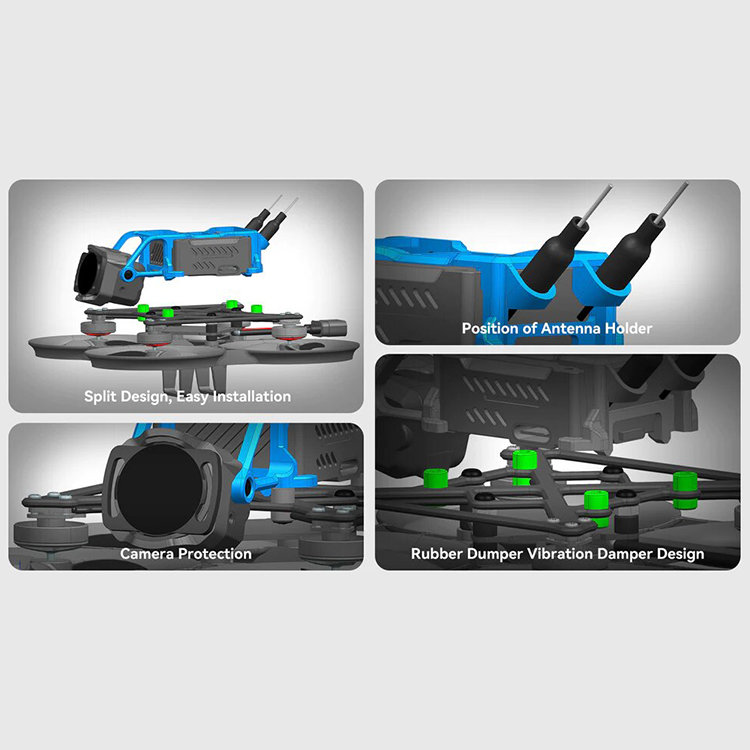Установка DJI O3 легкая и прямая, а для Avatar и Vista требуется дополнительная монтажная площадка. Рама также подходит для пользователей, предпочитающих DIY сборку и установку HD VTX |