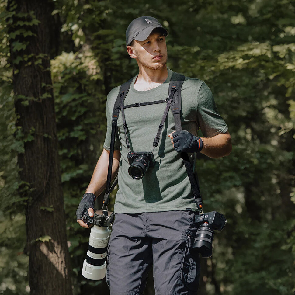 Многофункциональная платформа для профессиональной съемкиРазгрузочная система PGYTECH Camera Strap Master поддерживает одновременное размещение до трех камер с объективами благодаря двухплечевой конструкции выдерживающей 90кг. Инновационные замки быстрого отсоединения совместимы с фирменными пластинами бренда, обеспечивая мгновенное переключение между режимами ношения, штативом или стабилизатором. Интегрированный механизм блокировки строп автоматически фиксирует положение при бездействии и обеспечивает легкий доступ во время съемки |