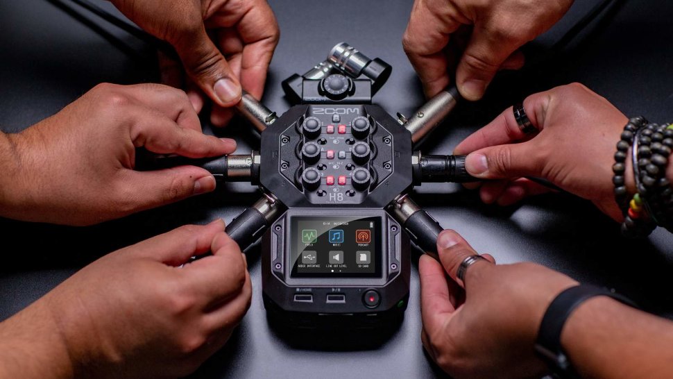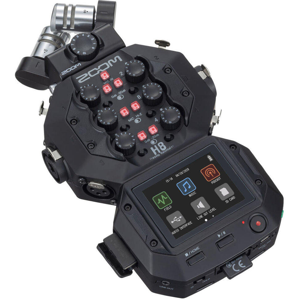 Zoom H8 способен непрерывно работать более 10 часов от четырех батареек AA, и он идеально подходит для записи звука вне студии, а также создания музыки и подкастов |