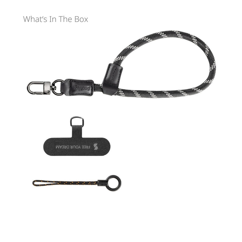 Удобство и универсальностьРемешок SmallRig FilMov для смартфона из нейлонового шнура и натуральной кожи сочетает эко-дизайн с функциональностью: регулируемая длина и металлический карабин позволяют фиксировать телефон, AirPods, ключи или аксессуары. Комплектация включает тросовую петлю и тонкую крепежную пластину, устанавливаемую в разъем Type-C без препятствования зарядке. Альтернативный вариант крепления — через отверстие в чехле. Инструменты для монтажа не требуются. Рекомендовано избегать контакта с агрессивными химикатами и интенсивных физических нагрузок для предотвращения повреждений