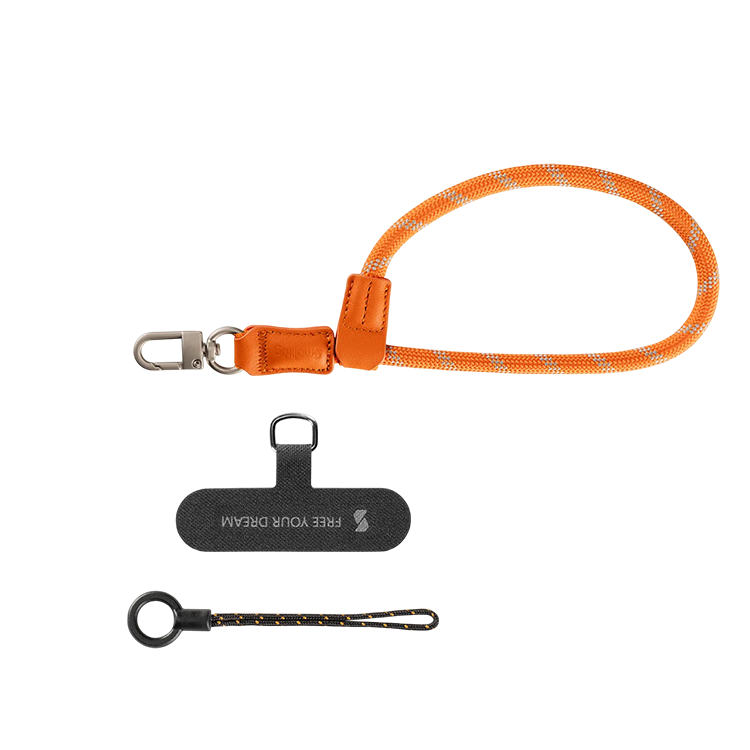 Ремешок SmallRig FilMov для смартфона из нейлонового шнура и натуральной кожи сочетает эко-дизайн с функциональностью: регулируемая длина и металлический карабин позволяют фиксировать телефон, AirPods, ключи или аксессуары. Комплектация включает тросовую петлю и тонкую крепежную пластину, устанавливаемую в разъем Type-C без препятствования зарядке. Альтернативный вариант крепления — через отверстие в чехле. Инструменты для монтажа не требуются. Рекомендовано избегать контакта с агрессивными химикатами и интенсивных физических нагрузок для предотвращения повреждений