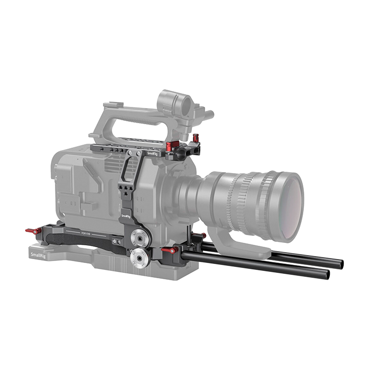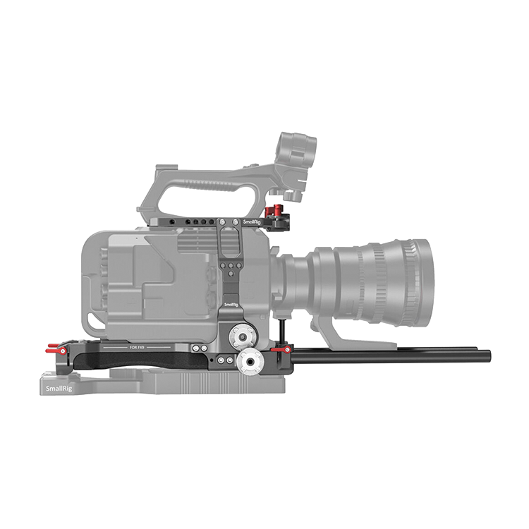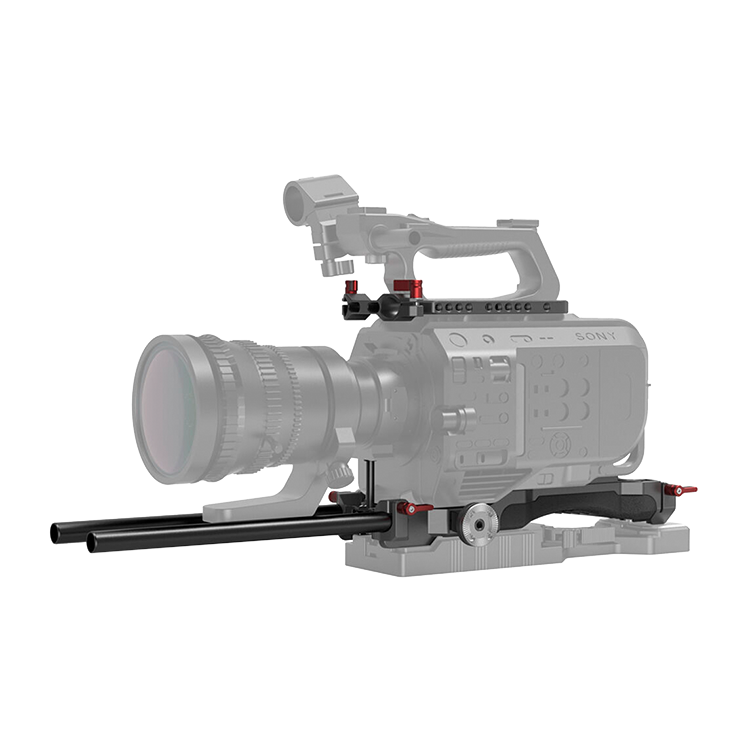 Система риг для камеры Sony PXW-FX9. Представленные аксессуары имеют несколько резьбовых отверстий 1/4" и 3/8" для установки оснащение. С помощью данного комплекта вы сможете с легкостью переключаться между съемками со штатива и съемками с плеча |