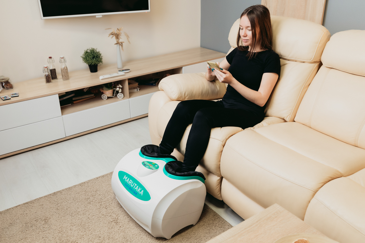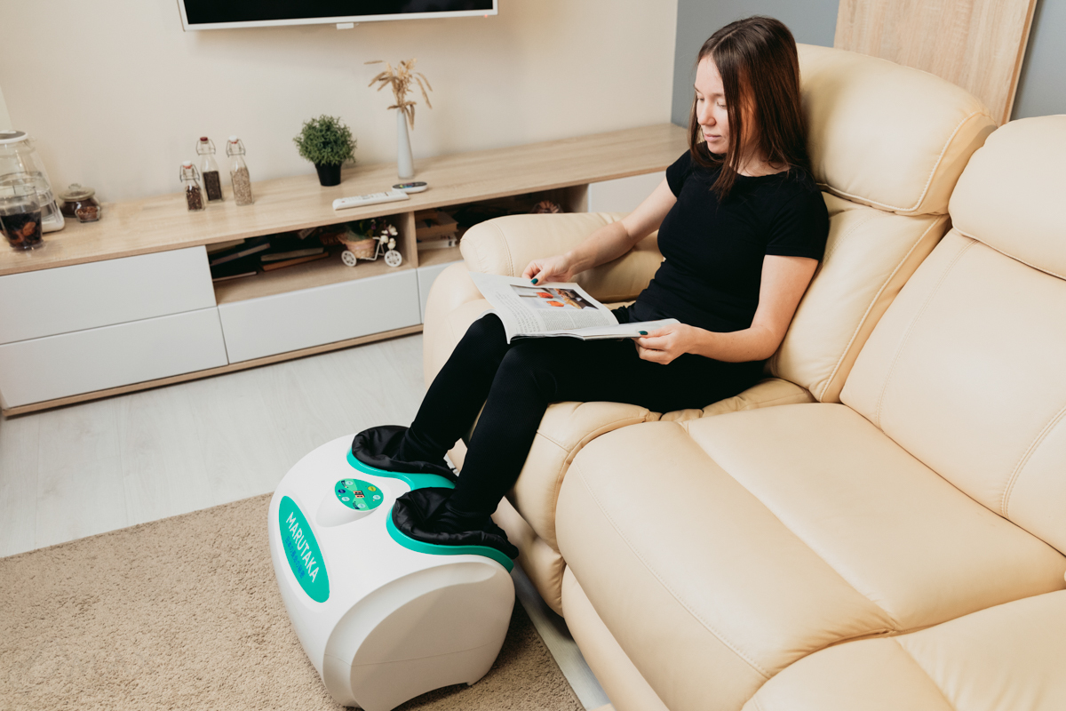Позаботьтесь о стопах с Marutaka!Массажёр Marutaka – авторская разработка японского медика Маюри Такада, предназначенная для зонального воздействия на активные точки стоп. В основе работы аппарата лежат принципы древнеяпонского массажа шиацу, объединённые с новейшими разработками и технологиями. Уникальная технология Marutaka позволяет выполнять акупунктурный и пневмокомпрессионный массаж ног при помощи механического аппаратного воздействия. Внутренняя поверхность массажёра, покрытая тканью, мягко сдавливает щиколотки, а ролики, вращающиеся в разных направлениях, точечно прорабатывают стопы. Процедуры с массажёром Марутака помогают ускорить ток крови и лимфы, избавиться от мышечного напряжения и улучшить общее самочувствие. Массаж стоп крайне полезен как для общего расслабления, так и для профилактики и лечения многих болезней: синдрома беспокойных ног, варикоза, плоскостопия, синдрома холодных ног и других. |