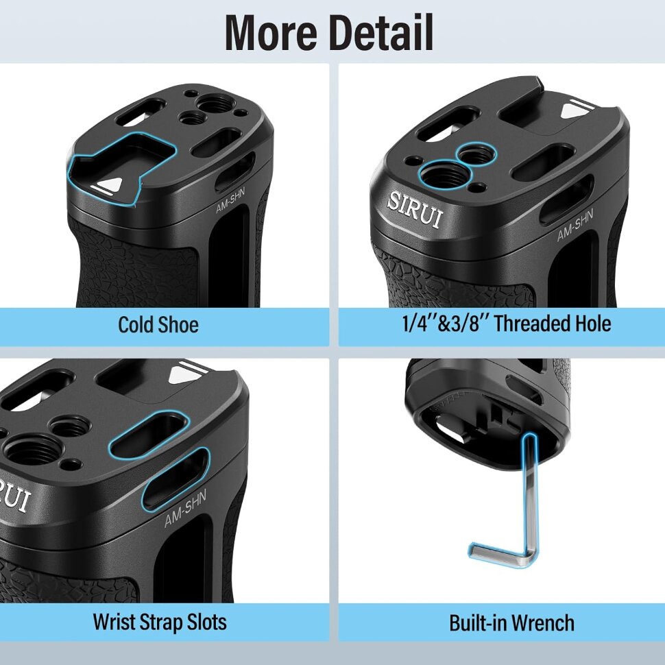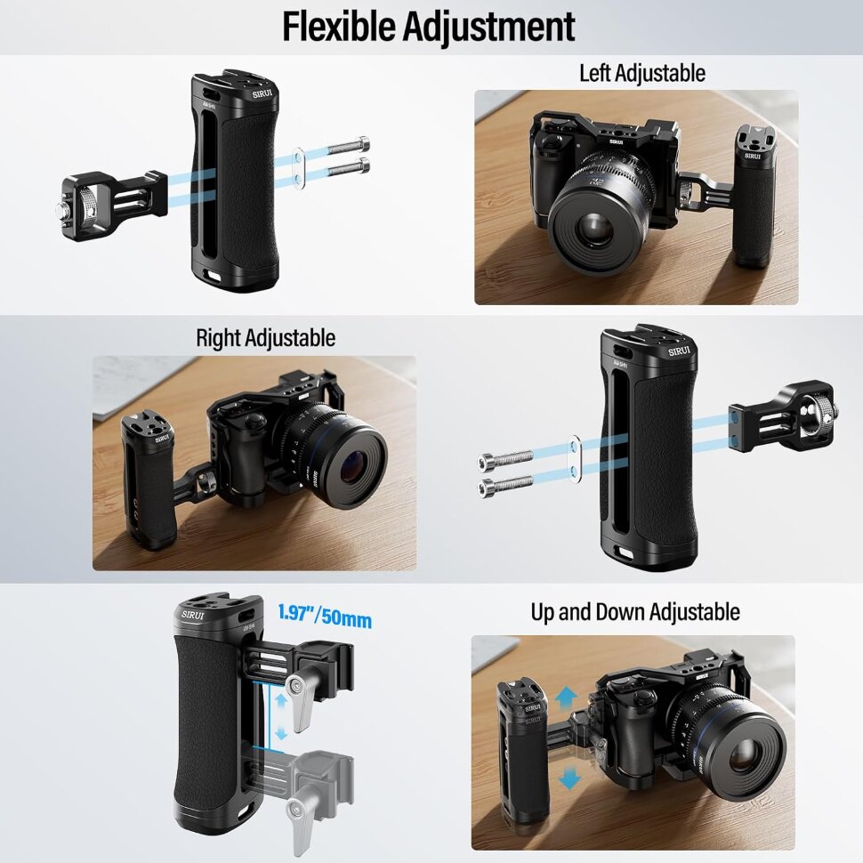 Универсальное крепление и гибкость установкиРукоятка Sirui AM-SHN совместима с камерами и клетками, оснащенными 3/8" отверстиями с направляющими, а также крепится через зажим NATO (в комплекте). Может быть установлена как с левой, так и с правой стороны, а также отрегулирована по высоте в диапазоне 50мм |