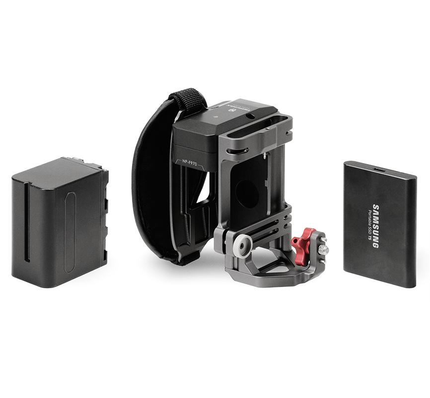Боковая рукоятка предназначена для закрепления на клетках и системах риг. К конструктивным особенностям аксессуара относят наличие слота для установки батареи Sony NP-F970 для питания мотора Nucleus Nano. Кроме того устройство получило слот для установки SSD диска Samsung T5 |