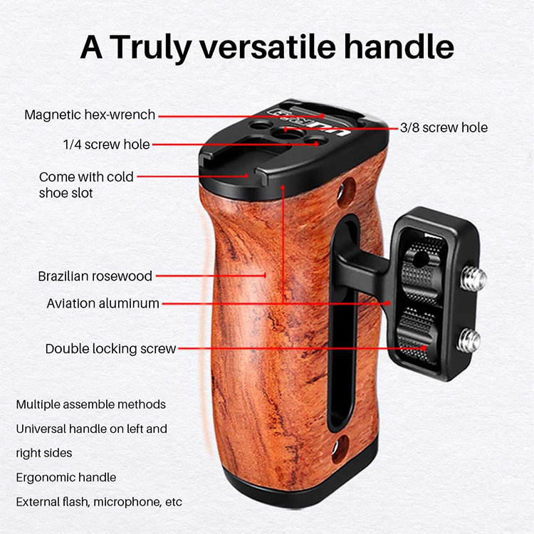 Рукоятка разработана специально для установки на клетки и системы риг для камер или смартфонов. Регулируемое крепление позволяет выбрать необходимую высоту и сторону для наибольшего комфорта |