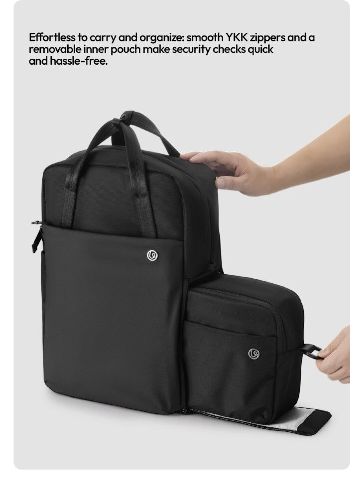 Удобная организация пространстваРюкзак F08 объёмом 20 литров оснащён системой модульной организации внутреннего пространства. Съёмная внутренняя сумка позволяет адаптировать пространство под различные сценарии использования. Специализированные отделения обеспечивают порядок при транспортировке фотооборудования, аксессуаров и личных вещей. Изолированное отделение для ноутбука до 16 дюймов с демпфирующей подкладкой дополнено системой быстрого доступа к документам через внешний карман с магнитными клапанами. Кармашек для меток вроде AirTag поможет отследить F08 в случае потери |