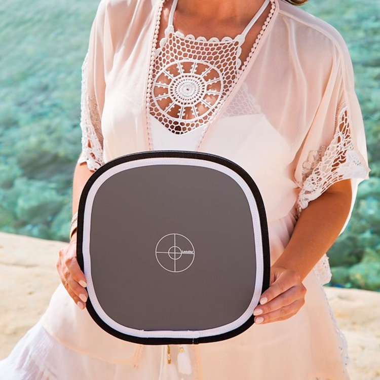Карта Ezybalance 18% поможет настроить точный цветовой баланс. Выполняется настройка непосредственно перед съемкой путем наведения камеры на белую поверхность экрана. Специальная мишень дает возможность камере правильно сфокусироваться. В сложенном виде карта имеет небольшие размеры, легко раскладывается и складывается |
