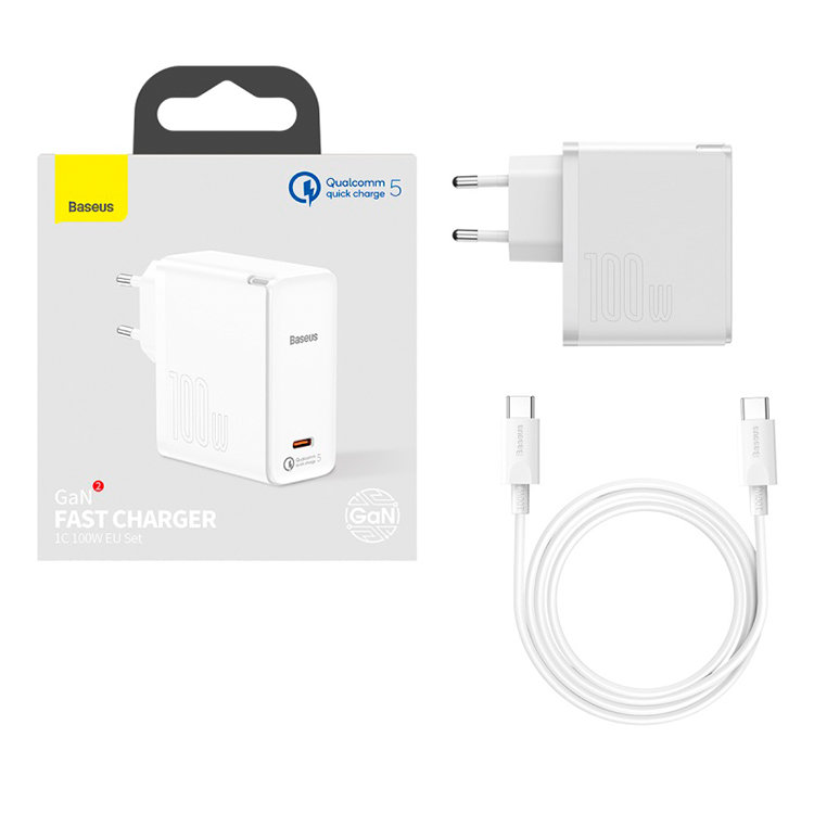 Сетевой адаптер Baseus GaN2 1C 100W + кабель Type-C Белый
