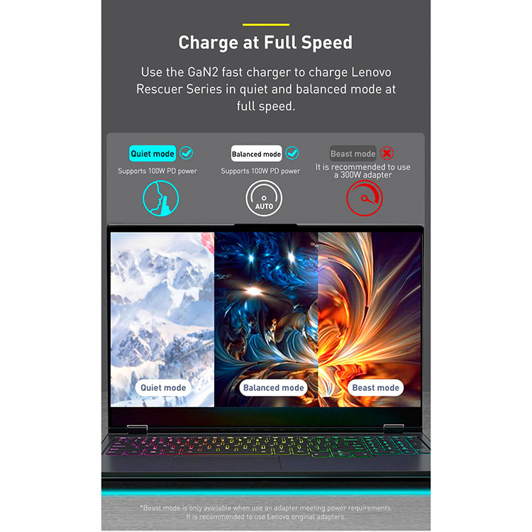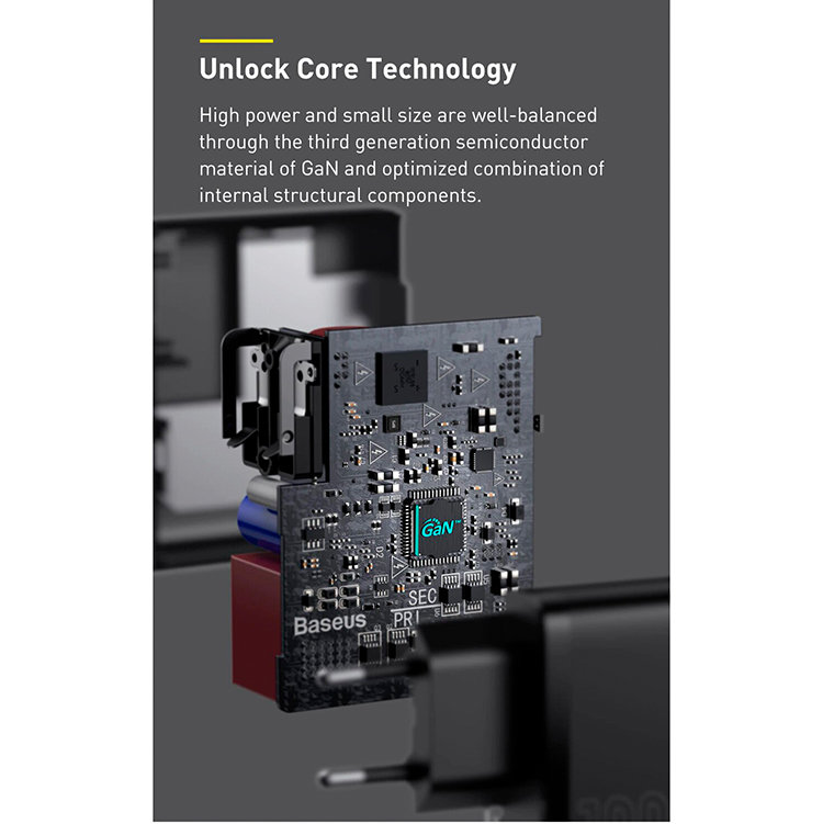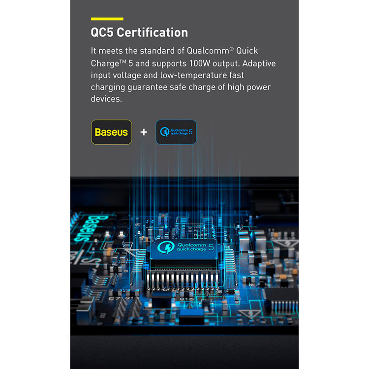 Инновационная технология охлаждения Baseus защищает СЗУ от перегрева, благодаря чему зарядное устройство способно долгое время работать даже на высокой мощности |