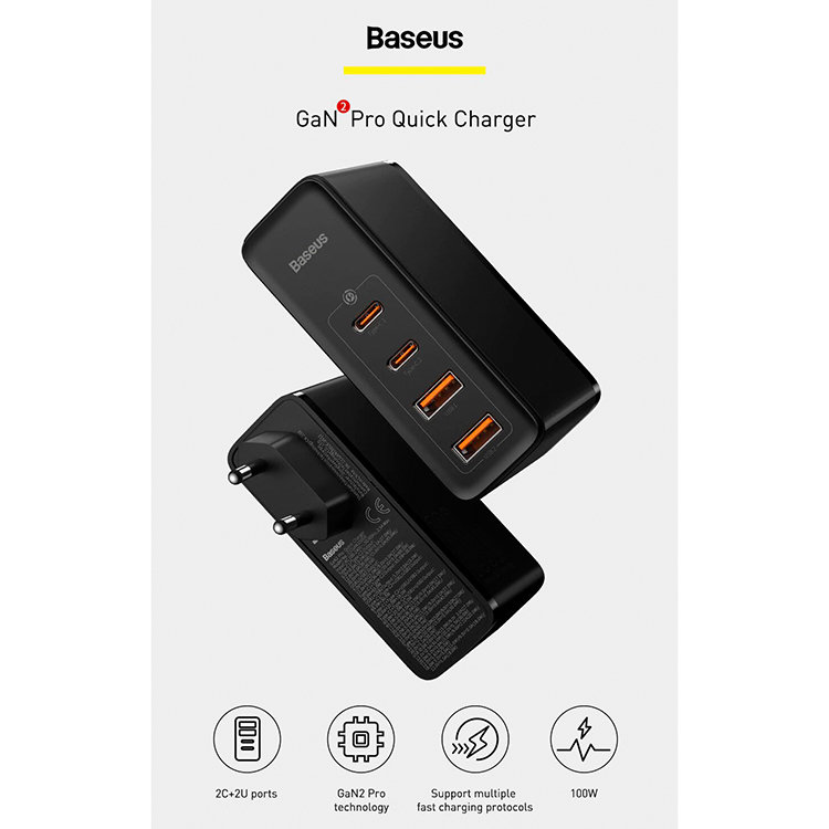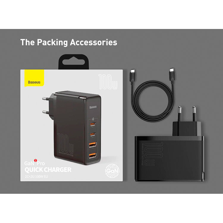 Сетевой адаптер Baseus GaN2 Pro 2C+2U 100W Чёрный