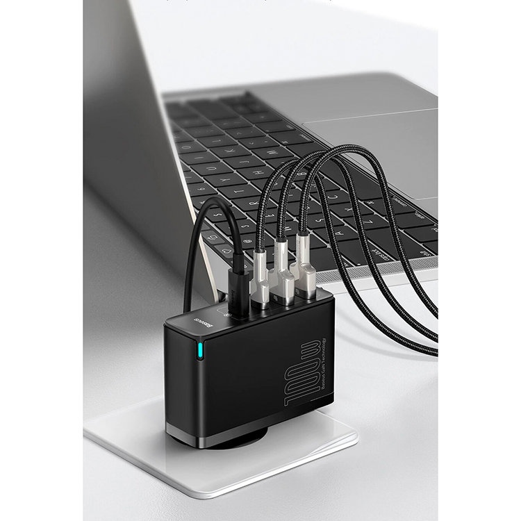 Сетевой адаптер с возможностью одновременно заряжать до четырёх гаджетов при общей мощности 100 Вт |