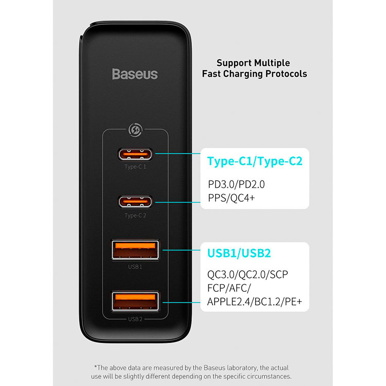 GaN2 Pro поддерживает множество протоколов быстрой зарядки, что гарантирует максимальную быструю зарядку как для карманного плеера, так и для ноутбука |