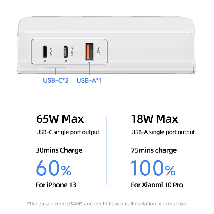 Порт с выходом на 65W позволит быстро зарядить ноутбук / планшет / Nintendo коммутатор и другие мощные устройства. Благодаря этому больше не нужно использовать зарядку USB. Теперь можно одновременно питать компьютеры, смартфоны и любые другие устройства |