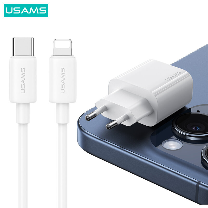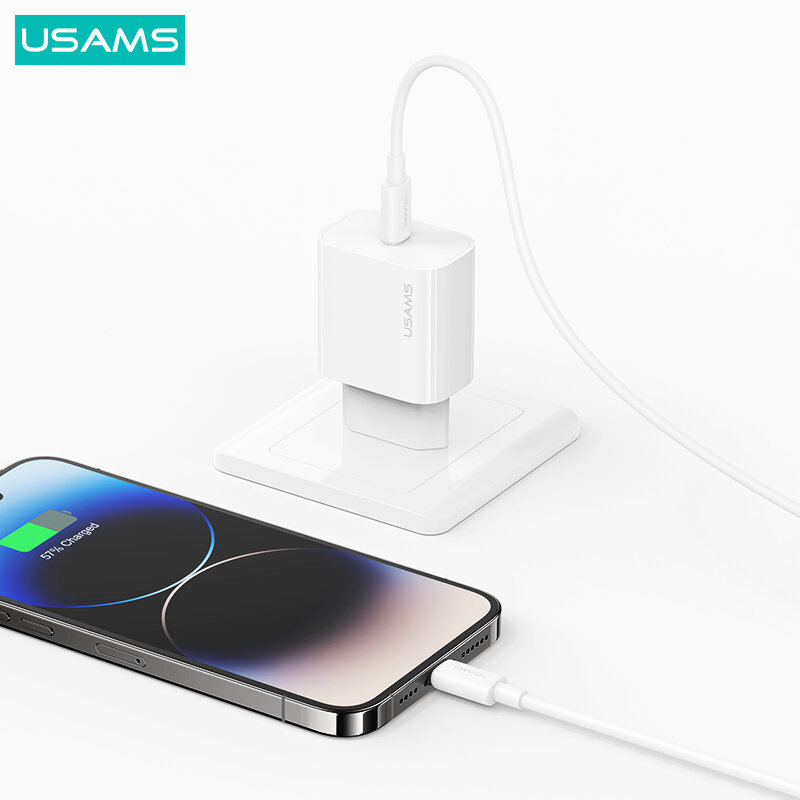 Сетевой адаптер USAMS CC226 PD20W Белый + кабель Lightning 30W