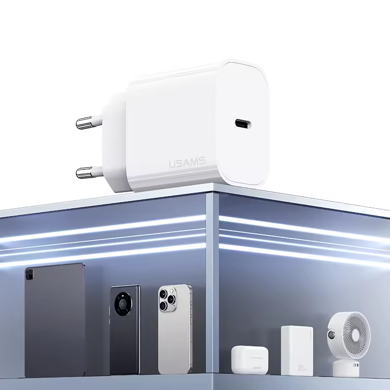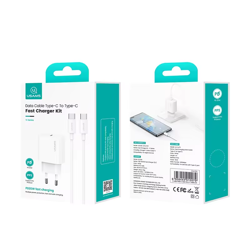 Сетевой адаптер USAMS CC226 Yi PD20W Белый + кабель Type-C 60W