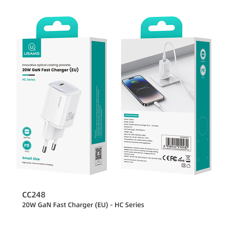 Компактное и мощное зарядное устройство CC248 отлично подходит для современных гаджетов. Он оснащен Type-C портом и поддерживает технологию Power Delivery (PD), что позволяет быстро заряжать мобильные телефоны, игровые плееры, камеры, наушники, смарт-часы и многое другое на мощности до 20 Вт. При весе всего 53 г и миниатюрных размерах, он идеально подходит для использования дома, в офисе или в путешествиях |