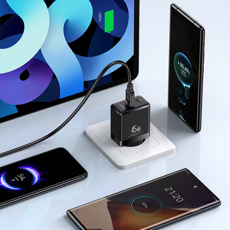 Сетевой адаптер USAMS US-CC178 T58 45W GaN Чёрный