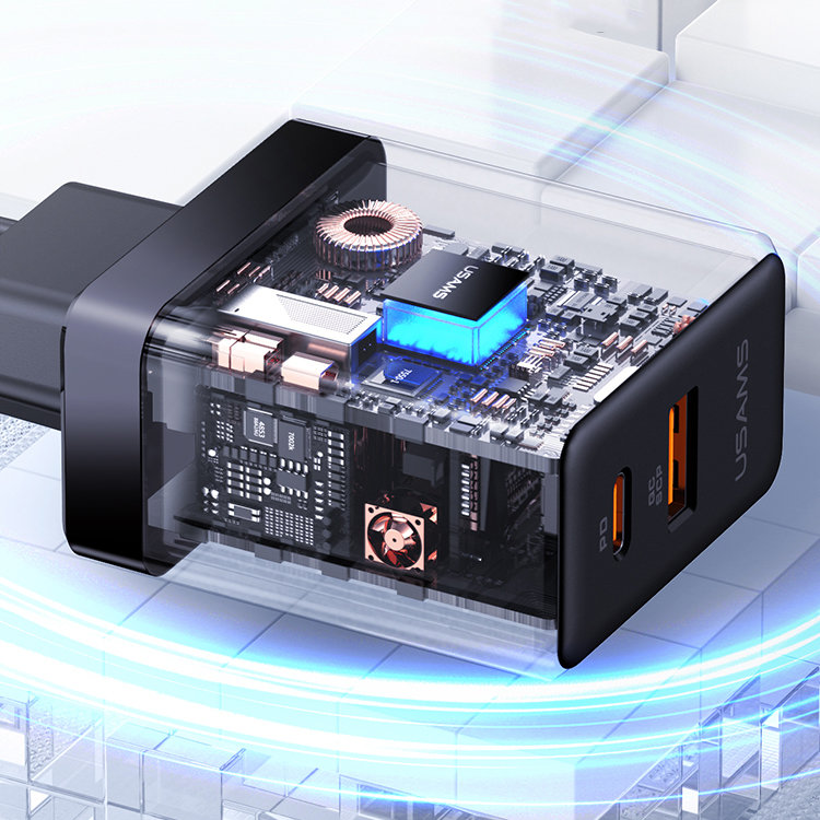 Зарядное устройство оснащено двумя портами быстрой зарядки Type-C PD и USB QC, что позволяет эффективно одновременно заряжать несколько устройств |