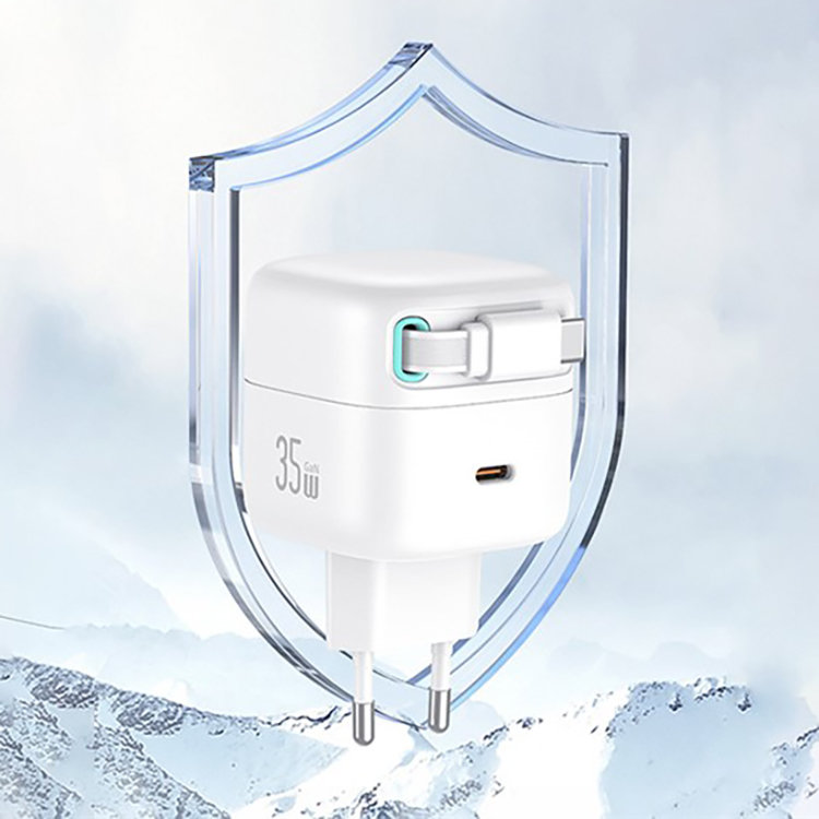Сетевой адаптер Usams US-CC202 XMF PD35W GaN с телескопическим кабелем Type-C Чёрный