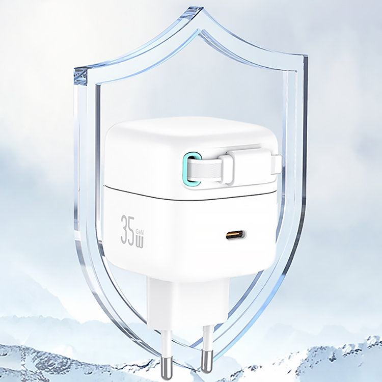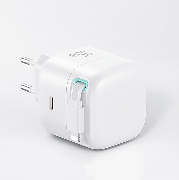 Сетевой адаптер Usams US-CC209 XMF PD35W GaN с телескопическим кабелем Lightning Белый