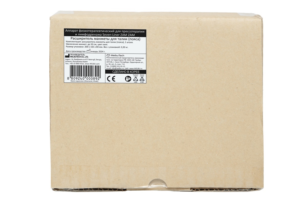 Уникальный расширительИспользование данной опции в значительной степени расширяет возможности манжеты-пояса: люди с большим охватом талии теперь имеют возможность получать полноценный и эффективный массаж всех зон – начиная от пресса и заканчивая ягодичными мышцами. Данный расширитель предназначен для манжеты-пояса линейки пневмокомпрессионных аппаратов Seven Liner. Корейский производитель WelbuTech первым на рынке внедрил подобный расширитель: он представляет собой прямоугольник, изготовленный из четырёхслойного сверхпрочного и водоотталкивающего материала, длиной 60 сантиметров и шириной 42 сантиметра. В отличие от других расширителей, Welbutech Seven Liner не имеет молний. Вместо них используются более простые в использовании липучки, что облегчает процесс подключения. В расширителе отсутствуют дополнительные камеры, которые необходимо накачивать, что также значительно упрощает его эксплуатацию. |