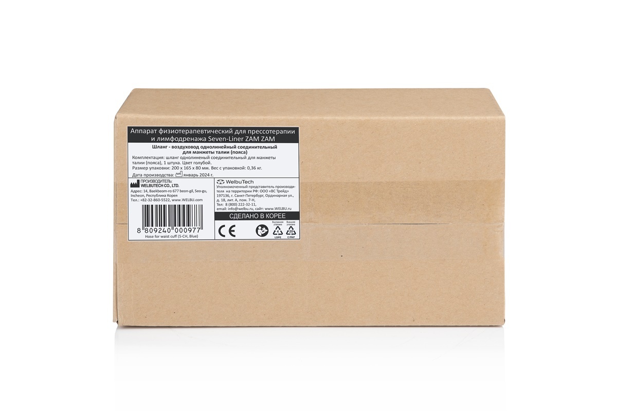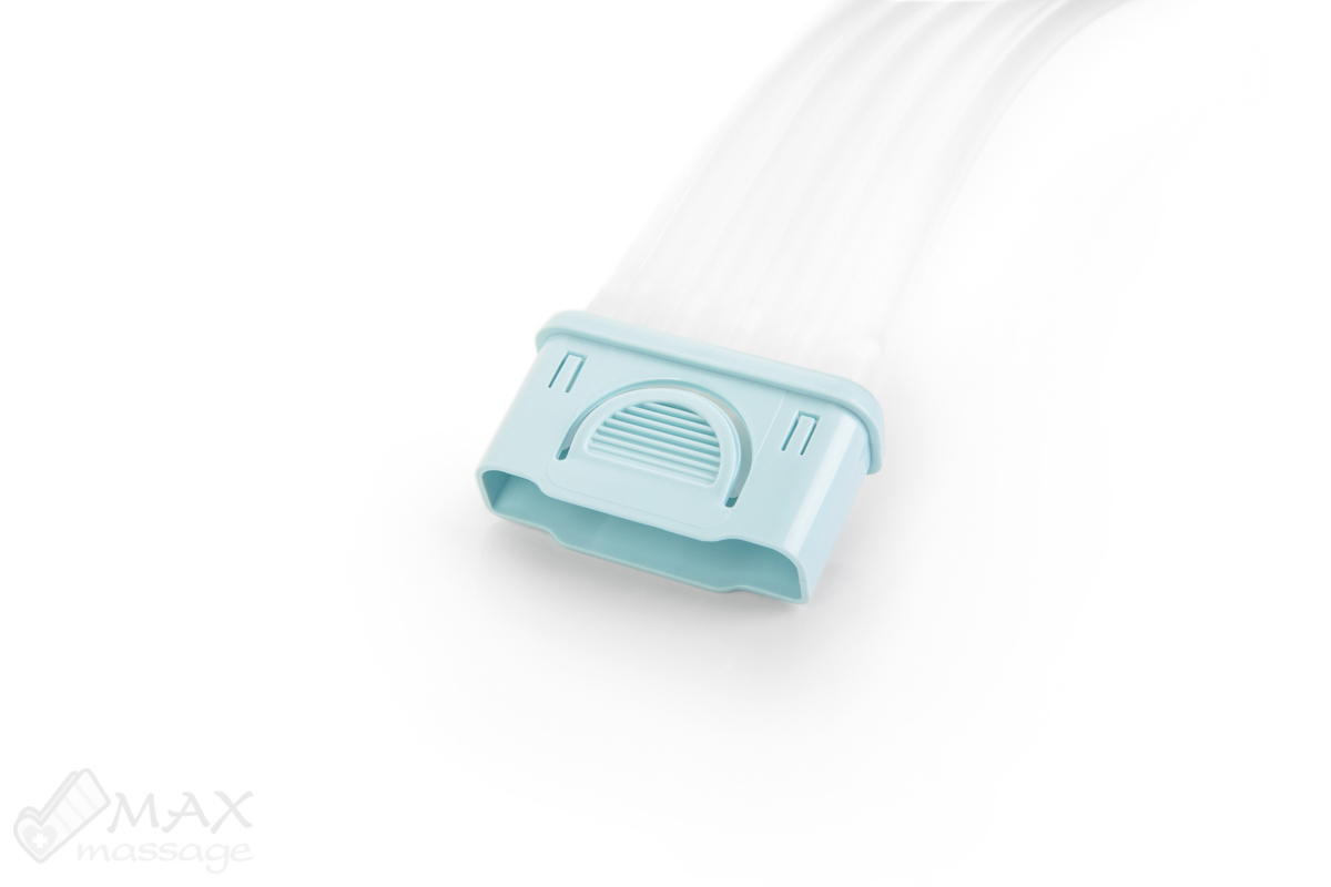 Этот шланг подходит к манжетам-поясам для пятикамерных аппаратов Zam-02, Zam-200S и Luxury Zam. С самим аппаратом шланг соединяется при помощи штекера. С другого конца шланга также расположен штекер с пятью каналами, который подключается непосредственно к манжете.