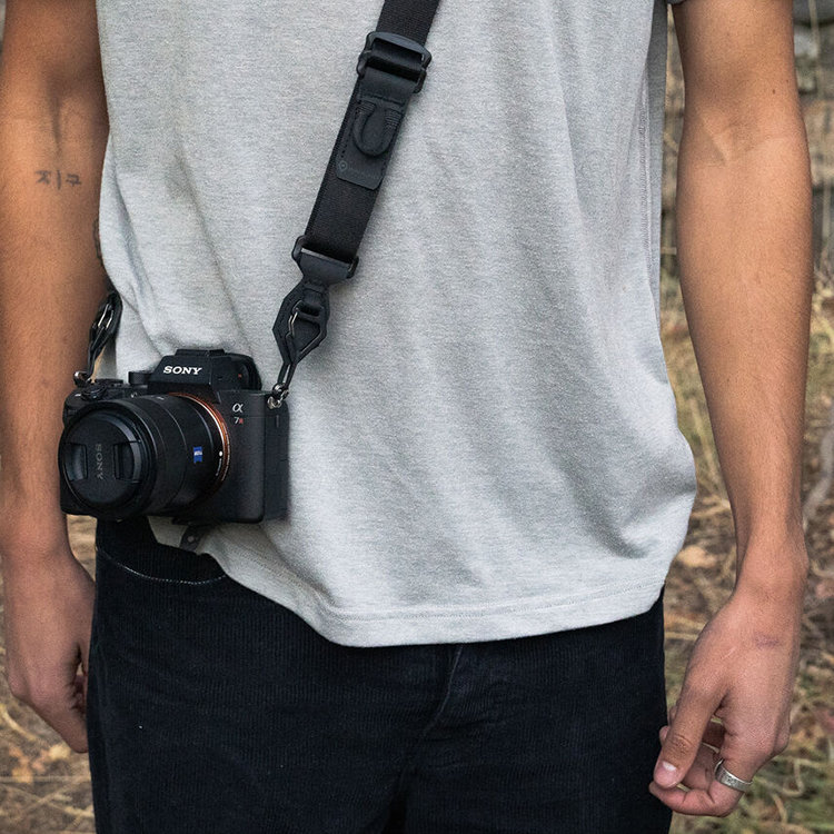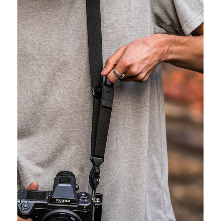 Фирменные карабины WANDRD имеют специальную форму и сильный зажим, благодаря чему можно не волноваться о выпадении камеры из Sling Strap |