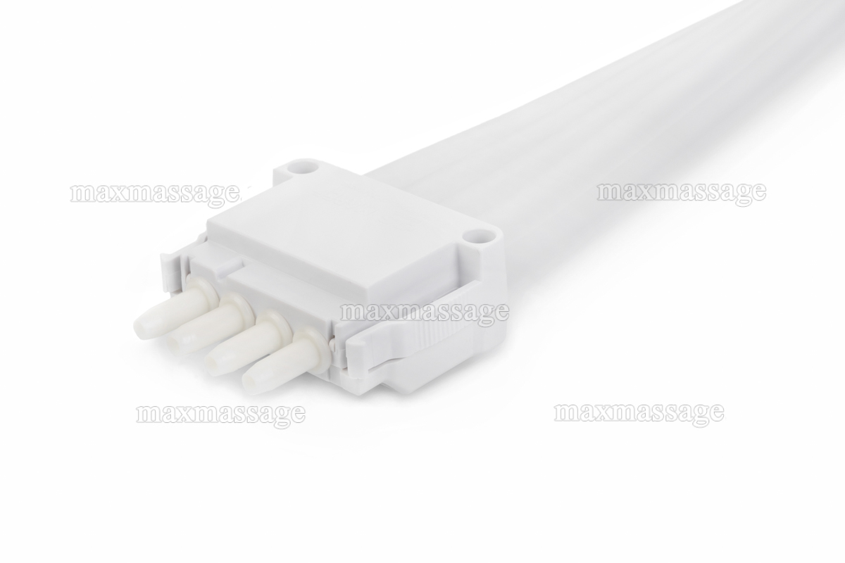 Особенности шланга для манжет ноги старого поколенияМанжеты старого поколения для аппаратов серии Доктор Лайф имеют по 4 камеры для интенсивного воздействия на массируемую область. Манжеты подсоединяются к массажёрам с помощью воздуховодов, представляющих собой воздушные шланги. К основному отличию шлангов для манжет старого поколения от шлангов для манжет нового поколения, можно отнести подключение к манжете с помощью раздельных воздуховодов. Шланг для ботфортов старого поколения имеет один вход (соединение с аппаратом) и восемь выходов (подключение к манжетам). В отличие от манжет нового поколения, в камеры ботфорт предыдущей модификации воздуховоды не впаяны. Таким образом, подключать их следует к каждой камере отдельно: 4 воздуховода на одну ногу, 4 – на другую. Шланг с раздельными воздуховодами изготовлен из силикона. Материал мягкий, гибкий и приятный на ощупь, при этом износоустойчив и имеет длительный эксплуатационный срок. |