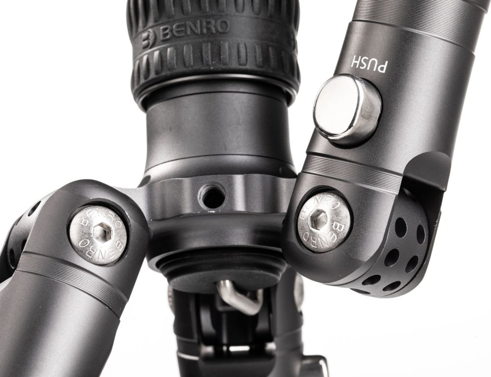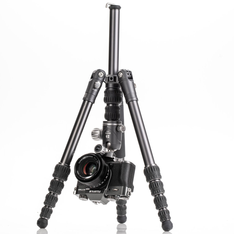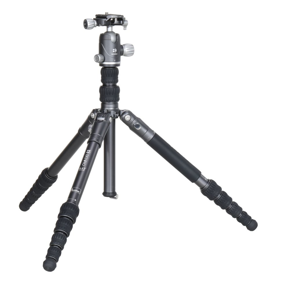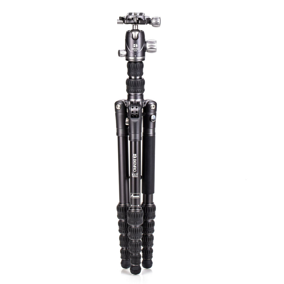 Штативы серии Bat имеют новую конструкцию с 5 фиксированными углами наклона ног, что позволяет устанавливать их в такие положения, которые не под силу аналогам. Центральную колонну можно быстро перевернуть, не снимая ее со штатива, для съемки на низком уровне. Он также унаследовал ключевые особенности всех походных штативов Benro: функциональность реверсивной складной ноги и портативности |