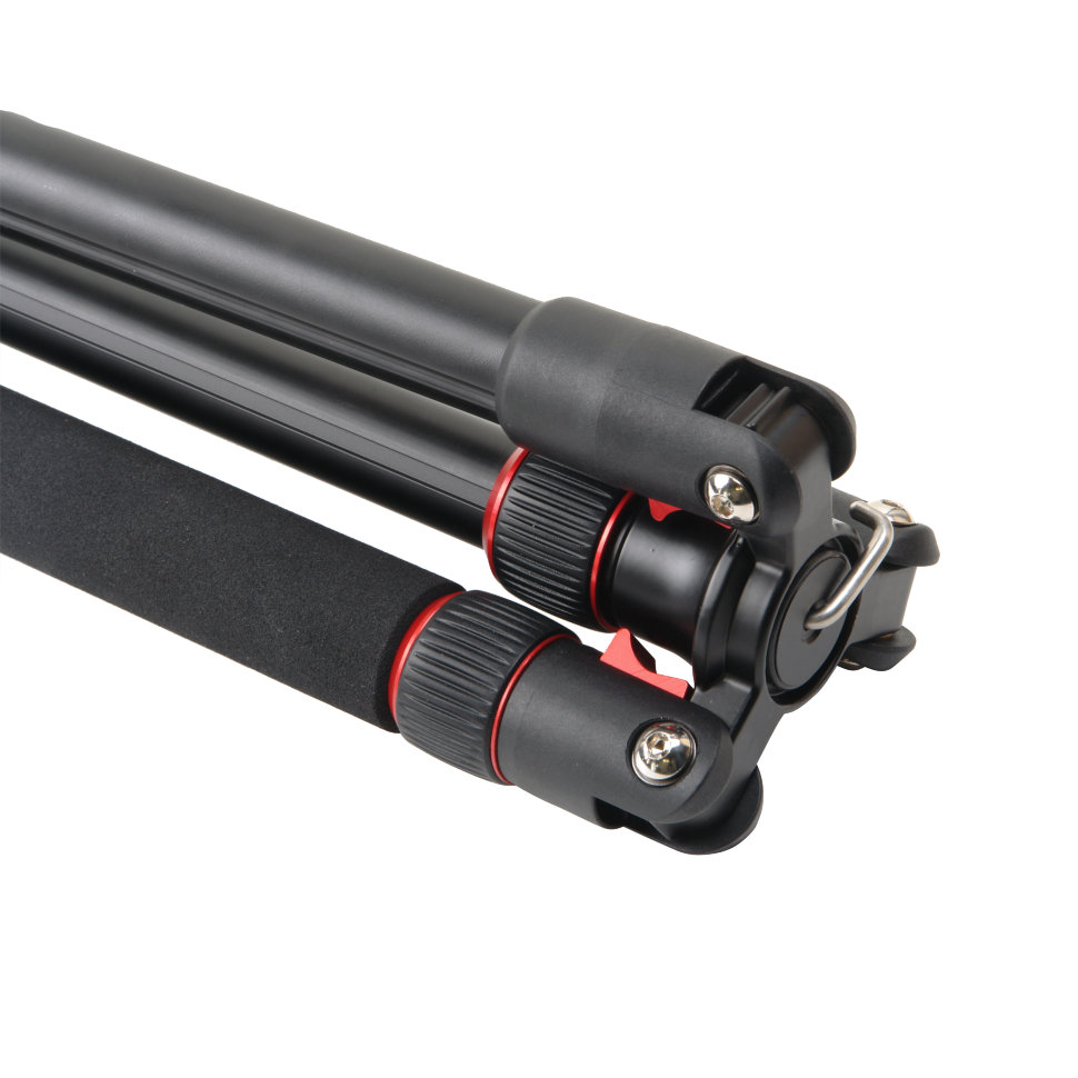 Четырехсекционные ножки имеют фиксатора угла наклона. Вы сможете зафиксировать каждую ногу под своим углом, что добавит гибкости для позиционирования камеры. Благодаря этому, штатив можно установить на любую опору и проводить съемку с низкого ракурса |
