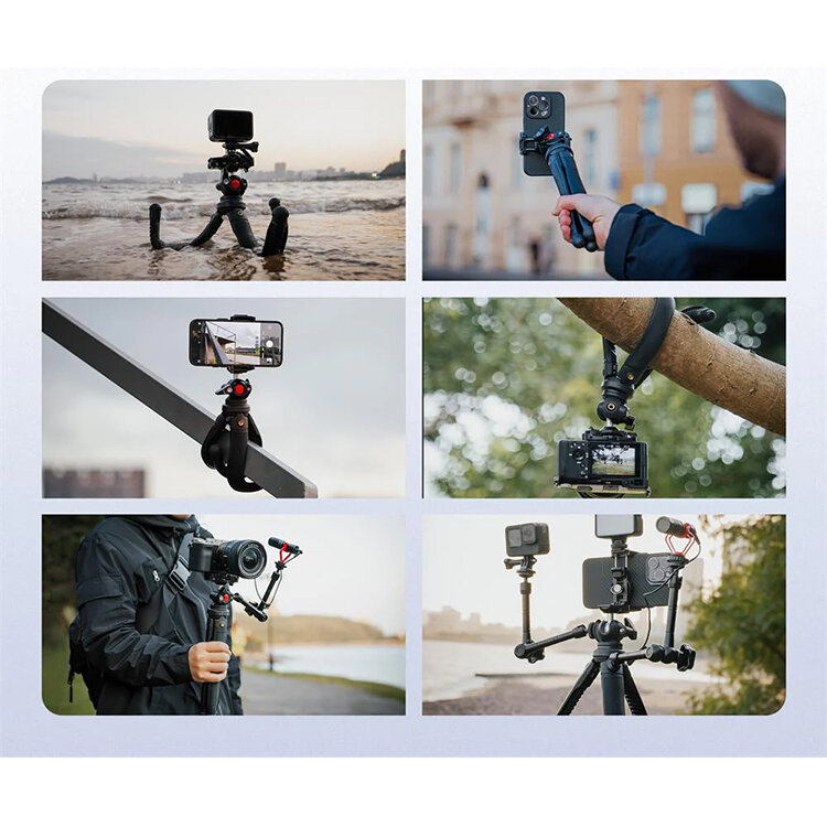 Стабильность и гибкость в любых условияхШтатив Freewell Vlogpod 3K сочетает легкость с прочностью, поддерживая устройства весом до 3 кг. Уникальные ножки с «змеиным» рельефом обеспечивают надежный хват и устойчивость на неровных поверхностях, а гибкие трубки из композитных материалов позволяют фиксировать камеру под любым углом. Алюминиевый сердечник и усиленные сочленения гарантируют долговечность даже при активном использовании в путешествиях или на съемках в экстремальных условиях |