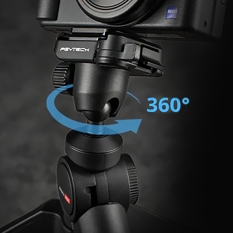 Максимальная гибкость и удобствоШаровая голова имеет поворот на полные 360°, а угол наклона в диапазоне до 120°. Разблокировать положение шарнира можно нажатием кнопки в основании. Помимо этого предусмотрено поворотное крепление холодный башмак для установки микрофона или осветителя |