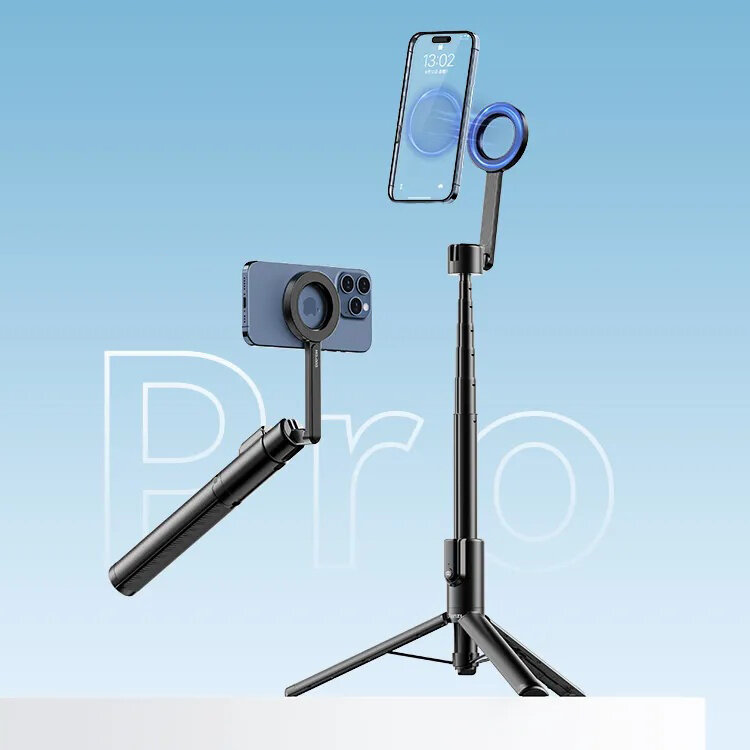 Многофункциональный штатив с режимом селфи-палки оснащен креплением MagSafe и предназначен для различных целей: от съемки видео и трансляций до создания контента. Он совместим с новыми моделями iPhone, оснащенными магнитным креплением, и в комплекте имеет магнитный стикер для других смартфонов. Благодаря магнитам N52 он способен выдерживать вес до 5 кг |