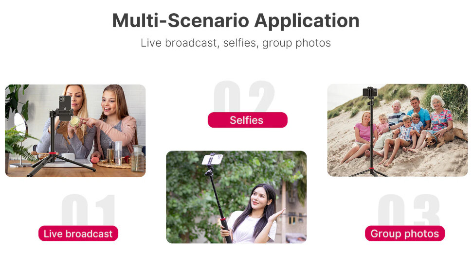 Любой ракурсВыдвижная констуркция открывает доступ к съёмке с любого ракурса. В режиме трипода высота регулируется от 34 до 149 см, а монопод от 32.5 до 146.5 см! Он подойдет для макросъёмки или низких ракурсов, а также для съёмки в полный рост и захватывающих селфи |