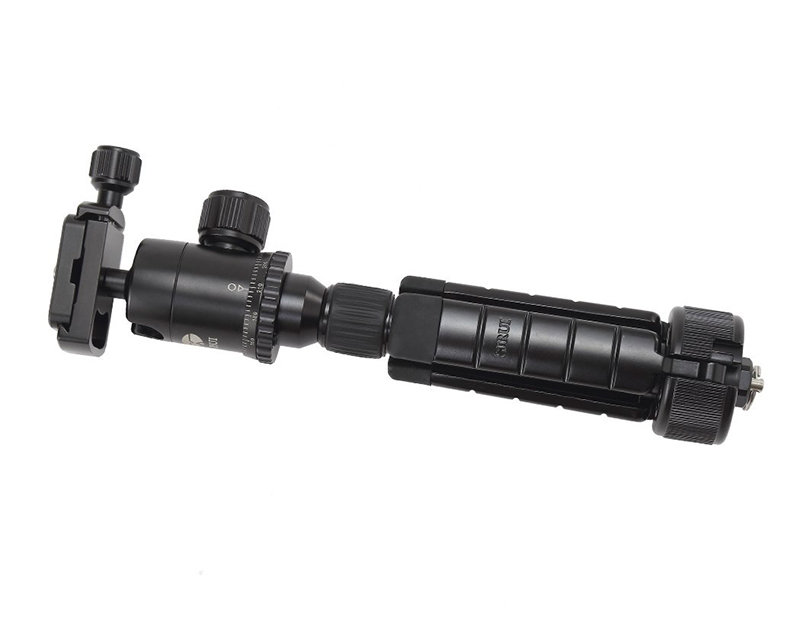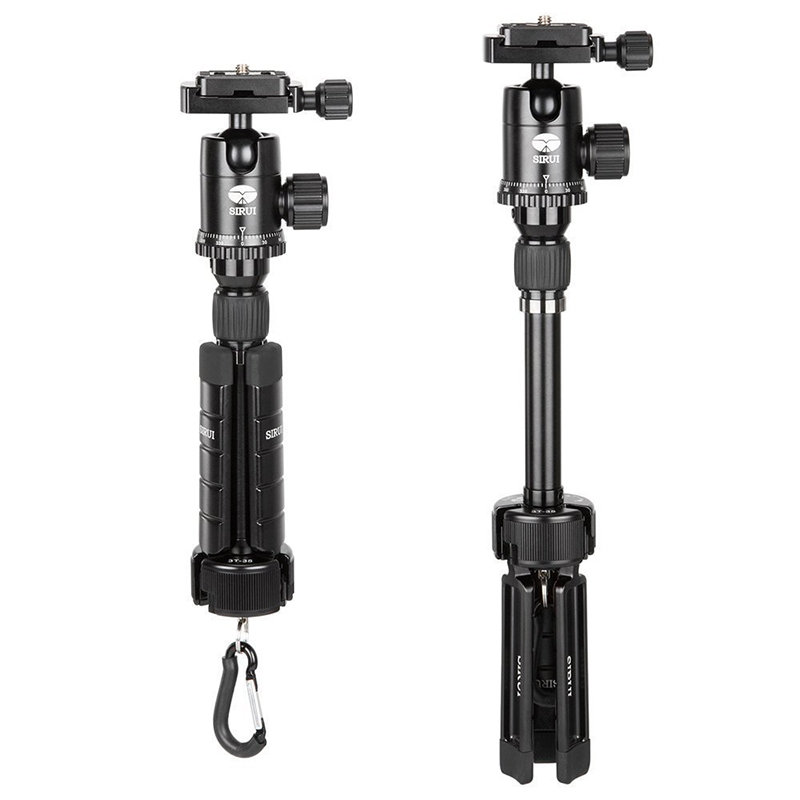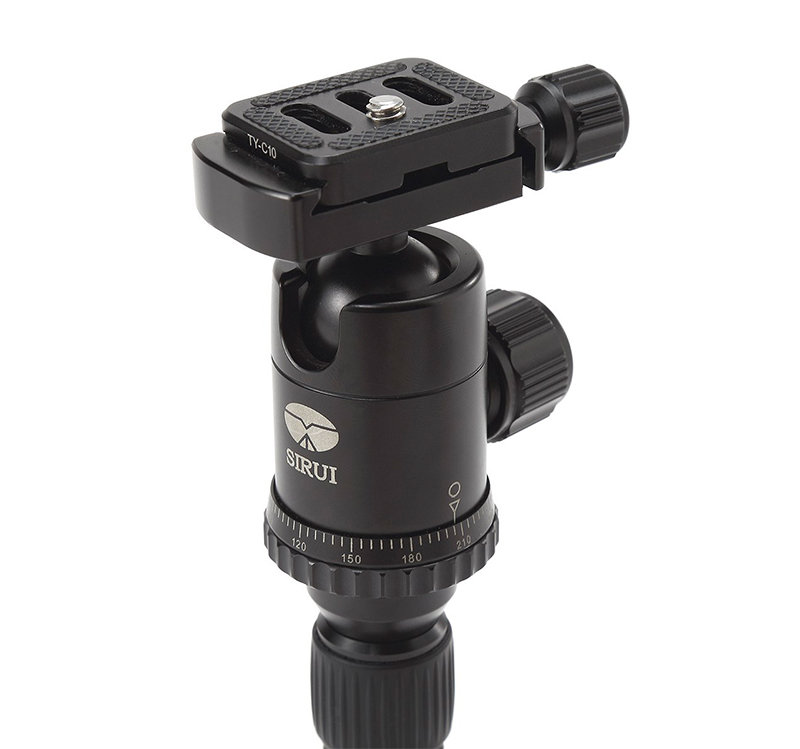 Штатив имеет в комплекте профессиональную голову с шарнирным креплением и быстросъёмной площадкой. Она хорошо сбалансирована и имеет компактные размеры, благодаря чему соблюдается идеальный баланс во время работы. В сложенном состоянии вы можете закрепить Sirui 3T-35K на пояс или рюкзак при помощи карабина |