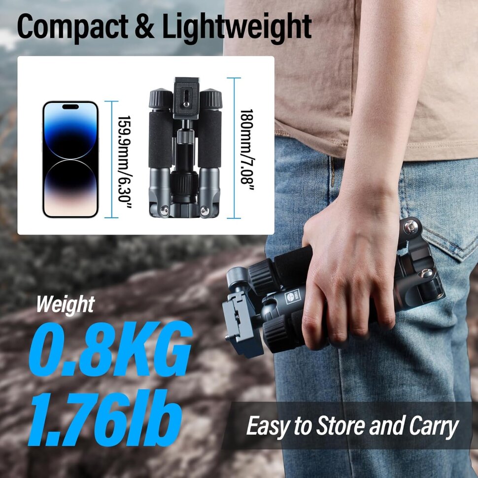 Компактность и легкость храненияИдеальный настольный штатив для небольшой камеры, смартфона, экшн-камеры или даже проектора. Благодаря складным алюминиевым ножкам штатив удобно хранить. Длина в сложенном виде составляет всего 18 см, а вес менее 0,8 кг, что делает его идеальным помощником для путешествий. Максимальная грузоподъемность штатива составляет 10 кг, что позволяет использовать его для различных задач съемки, в том числе с тяжелым оборудованием |