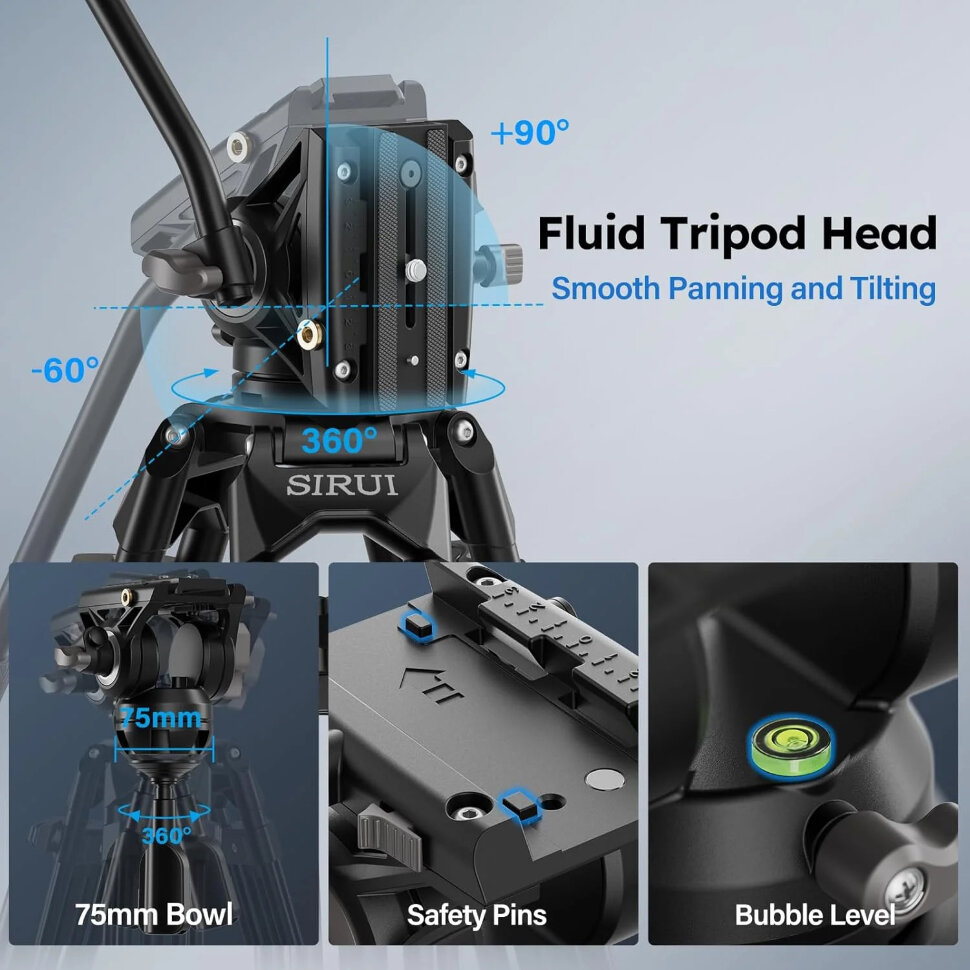 Универсальная интеграция и профессиональные аксессуарыШтатив обладает множественными точками крепления с резьбой 1/4" для установки света, микрофона или дополнительного оборудования. Съемная чаша 75 мм позволяет использовать головку отдельно или монтировать другие платформы. Совместим с тележкой Sirui AM-DF02 для динамичных перемещений камеры. В комплекте магнитный шестигранный ключ для оперативной регулировки. Рекомендован для профессиональной видеосъемки, трансляций и работы в экстремальных условиях |