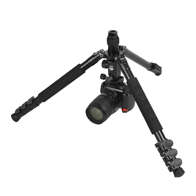Центральная колонна может быть перевернута, что будет удобно при съёмке с низких ракурсов. Также, предусмотрен крючок, на который можно повесить дополнительный груз для большей устойчивости штатива. На концах ног присутствуют противоскользящие резиновые наконечники |