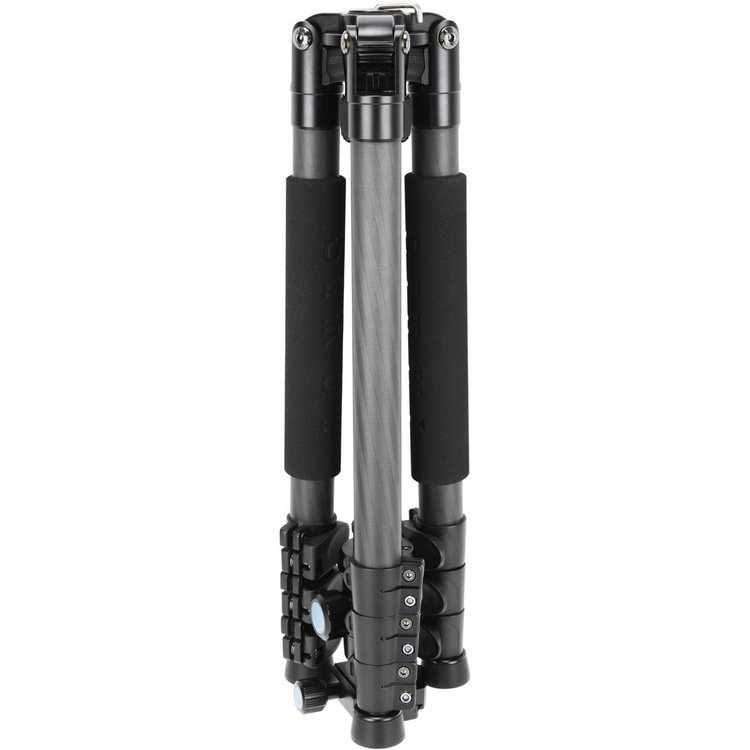 Центральная колонна может быть перевернута, что будет удобно при съёмке с низких ракурсов. Также, предусмотрен крючок, на который можно повесить дополнительный груз для большей устойчивости штатива. На концах ног присутствуют противоскользящие резиновые наконечники |