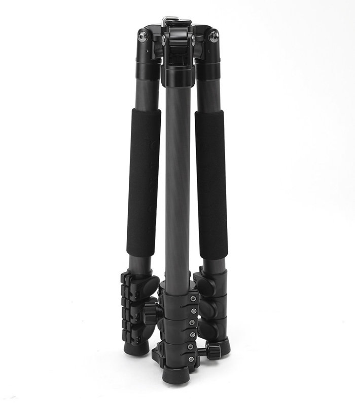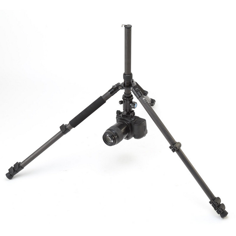 Центральная колонна может быть перевернута, что будет удобно при съёмке с низких ракурсов. Также, предусмотрен крючок, на который можно повесить дополнительный груз для большей устойчивости штатива. На концах ног присутствуют противоскользящие резиновые наконечники, под которыми находятся шипы для работы на грунте |