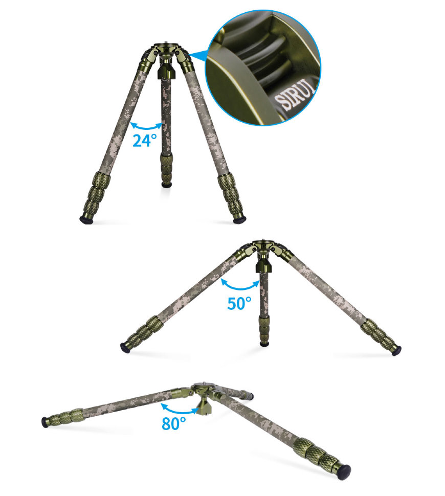 Штатив способен выдерживать нагрузку до 25 кг. Благодаря отсутствию центральной колонны его можно установить очень низко, максимальный угол ноги 80° |