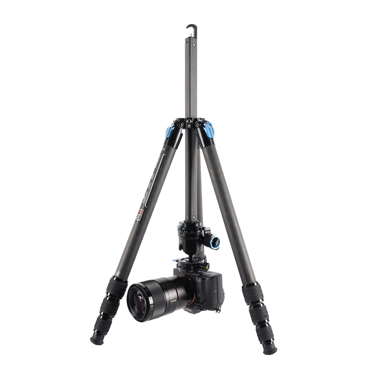 ST-224Отличительной особенностью штатива является центральная колонна с треугольным профилем для повышения жесткости. Конструкция выполнена из восьмислойного карбона, что обеспечивает лёгкость. Оборудован крюком для подвешивания груза |