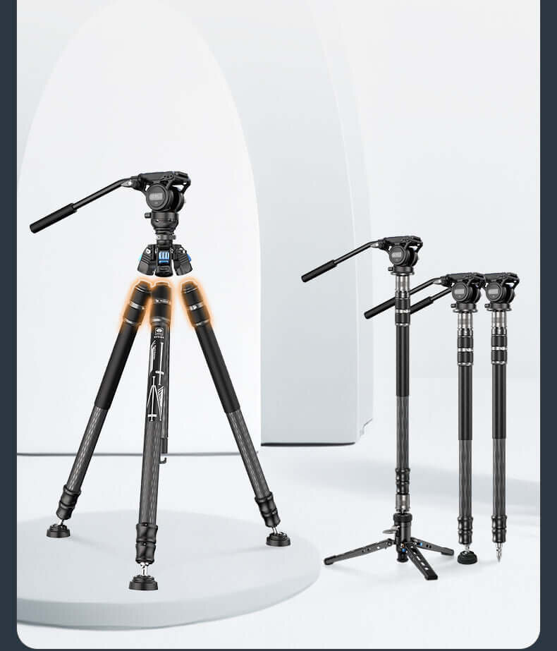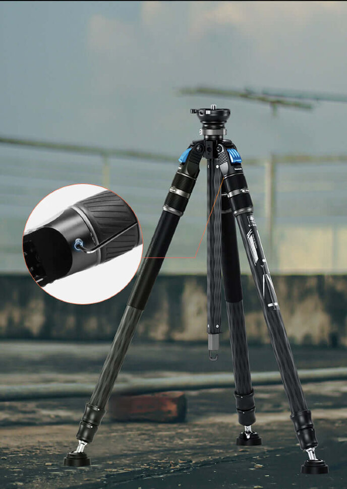 Инженерная точность и устойчивостьКонструкция использует легкие и прочные карбоновые трубки максимальным диаметром 30,3 миллиметра, выдерживающие нагрузку до 8 кг. Система выравнивания позволяет мгновенно отрегулировать горизонт, вращая полусферу с помощью рукоятки, что критически важно на неровной поверхности. Штатив предлагает максимальную рабочую высоту 1640 миллиметров и минимальную 295 миллиметров, а треугольная центральная колонна увеличивает жесткость и позволяет осуществлять съемку сверхнизкого ракурса в инвертированном положении. Ноги оснащены съемными резиновыми наконечниками и металлическими шипами для любого типа грунта |