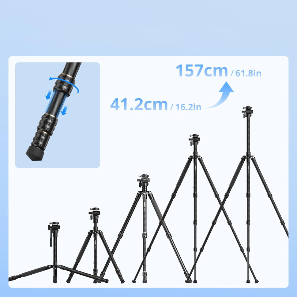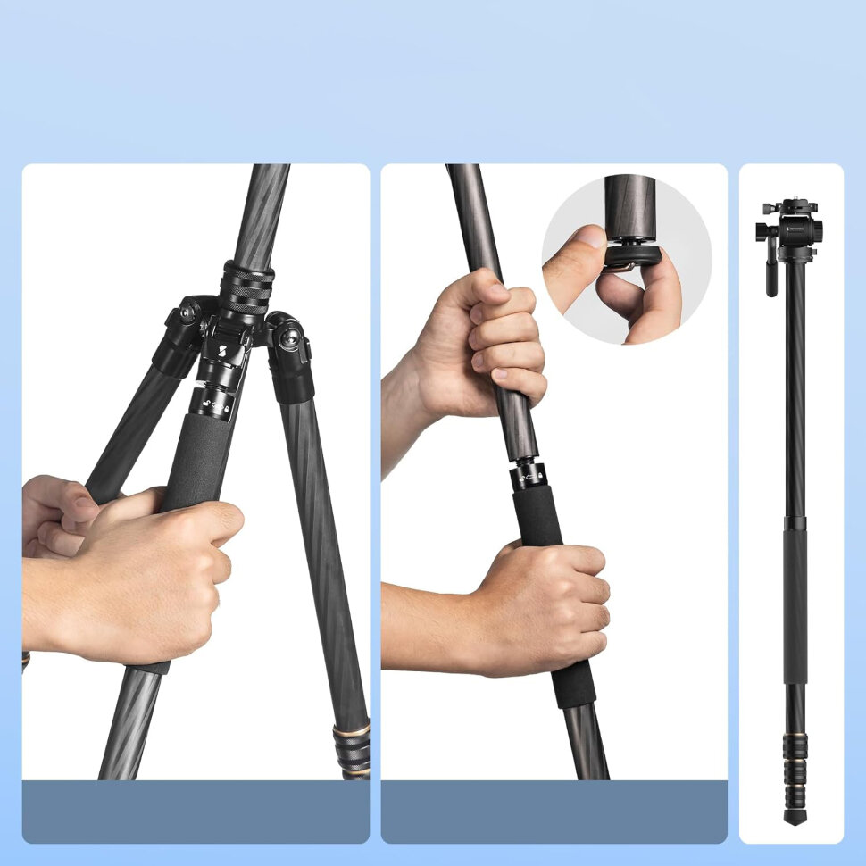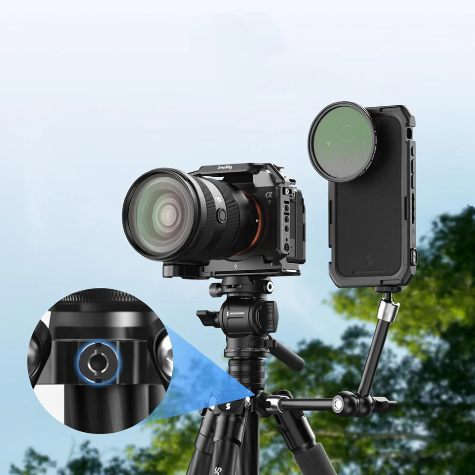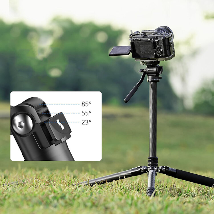 Профессиональные функции и адаптивностьШтатив оснащен трехпозиционным углом наклона ног (23°, 55°, 85°) и оснащён жидкостной головой CH3, которая обеспечивает плавное панорамирование на 360° и наклон до -70°. Резьбовые отверстия 1/4" позволяют крепить дополнительные аксессуары, а защита от проворота гарантирует стабильность. Конструкцию можно превратить в монопод, что еще больше повышает многофункциональность комплекта. Это решение для тех, кто ценит баланс между портативностью и профессиональными возможностями |