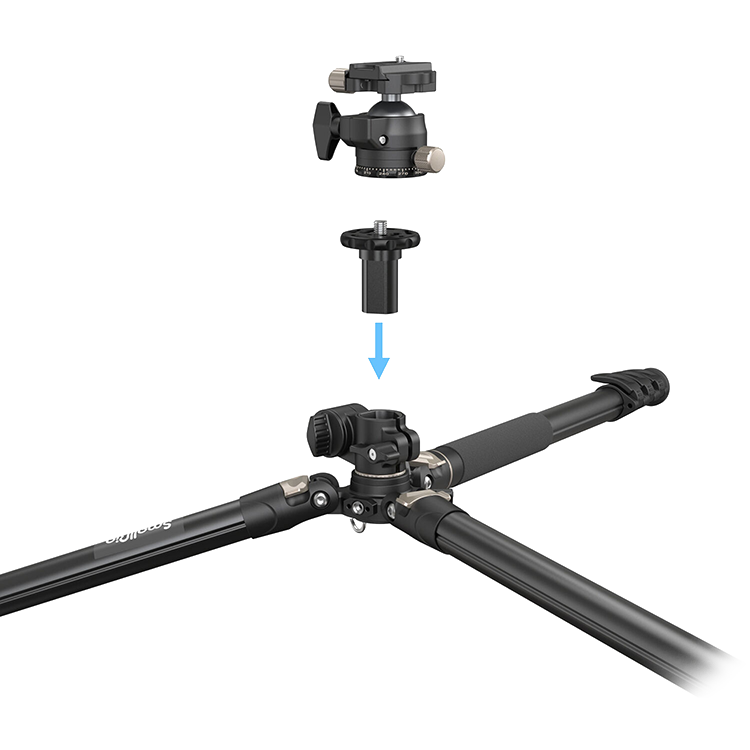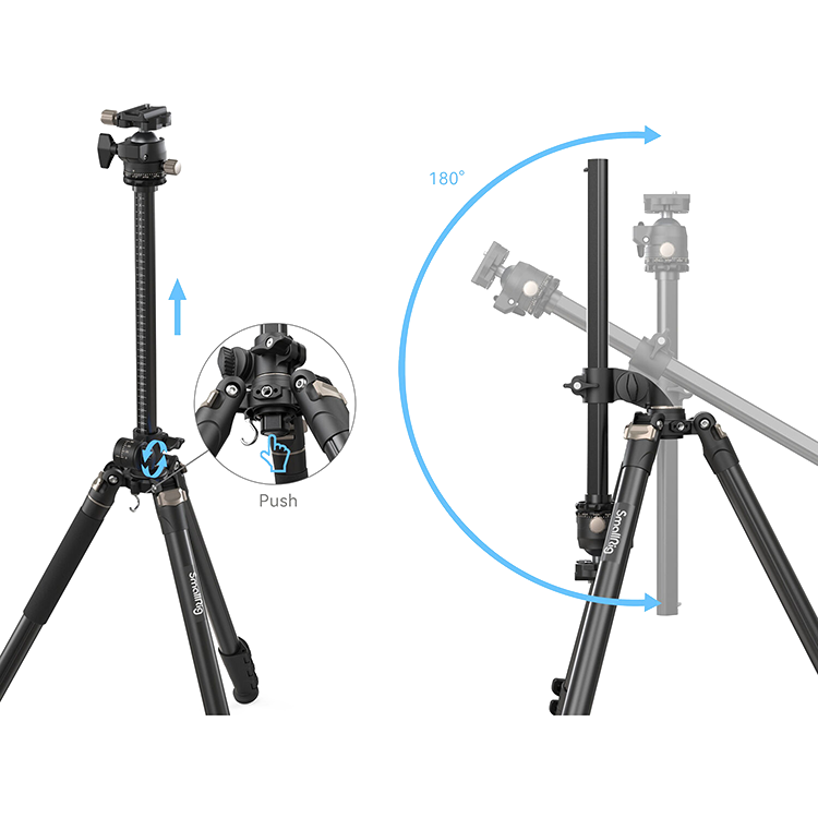 Функциональная центральная колоннаОсобенное крепление центральной колонны в штативе CT200 позволяет использовать его не только как стандартный трипод, но и как журавль для предметной и макросъёмки. Достаточно вытащить его и вы сможете изменить угол наклона в диапазоне 180 градусов |