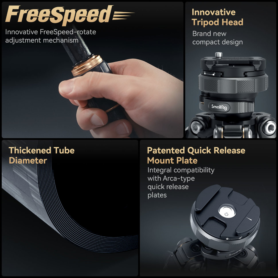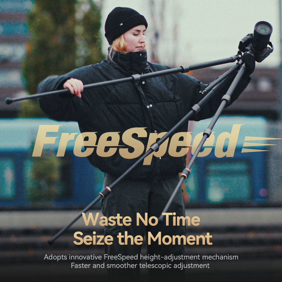 Инновационная конструкция FreeSpeed Rotate позволяет регулировать длину ноги поворотом только одной из 4х секций, а не каждой по отдельности. Благодаря этому готовиться к съёмке стало еще проще |