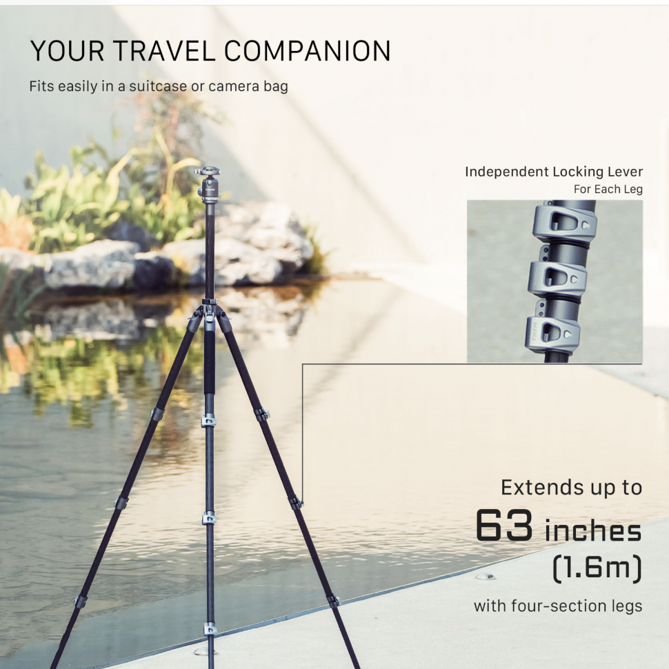 Новейший тревел-штатив BT05 с трёхсекционными карбоновыми ножками — это компактный и надёжный партнёр, созданный для мобильности и точности. Его прочная шаровая голова выдерживает статичную нагрузку до 20кг и до 5 кг при движении. Оснащена слотом для съёмки под углом 90°, что позволяет легко переключаться между горизонтальной, вертикальной и верхней съёмкой. Благодаря отсутствию центральной колонны штатив идеально подходит для работы в ограниченном пространстве и съёмки с низких ракурсов |