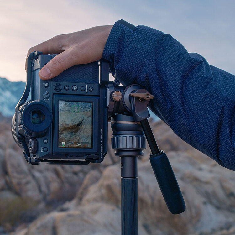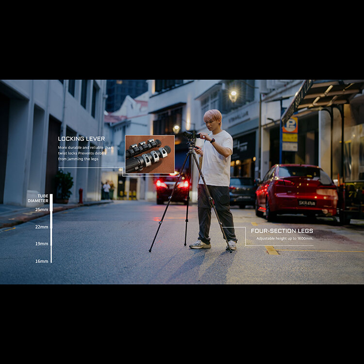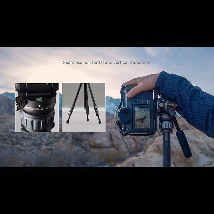 Гибкость и функциональностьШтатив предлагает широкие возможности для творчества: высота регулируется от 25 см до 1,8 м, а полуавтоматическая система изменения угла наклона и съемная карбоновая колонна обеспечивают быструю настройку. Множество креплений 1/4″с фиксирующими точками позволяют легко устанавливать дополнительные аксессуары |