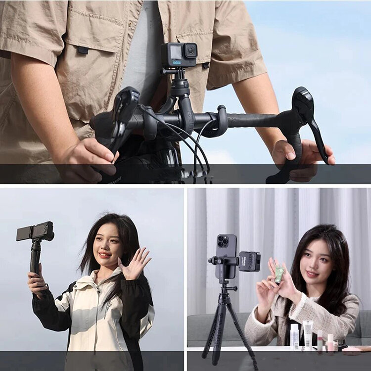 Легкая установка в любом местеНовая модель штатива с гибкими ножками, что подходит для работы с экшн-камерой, компактной камерой до 1.5кг и смартфоном. Эластичная конструкция открывает большой выбор ракурсов для съёмки. Ветка дерева, перила, ограждения и прочие элементы окружения - это отличный вариант чтобы закрепить гаджет для съёмки |